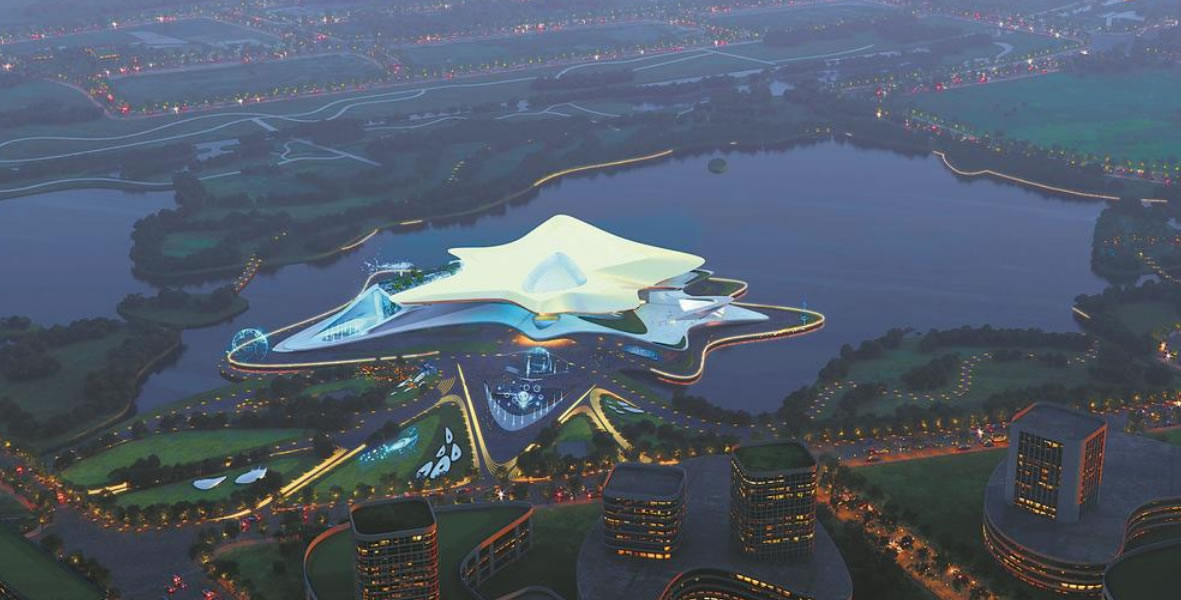 成都科幻館位于成都市郫都區(qū)菁蓉湖畔。